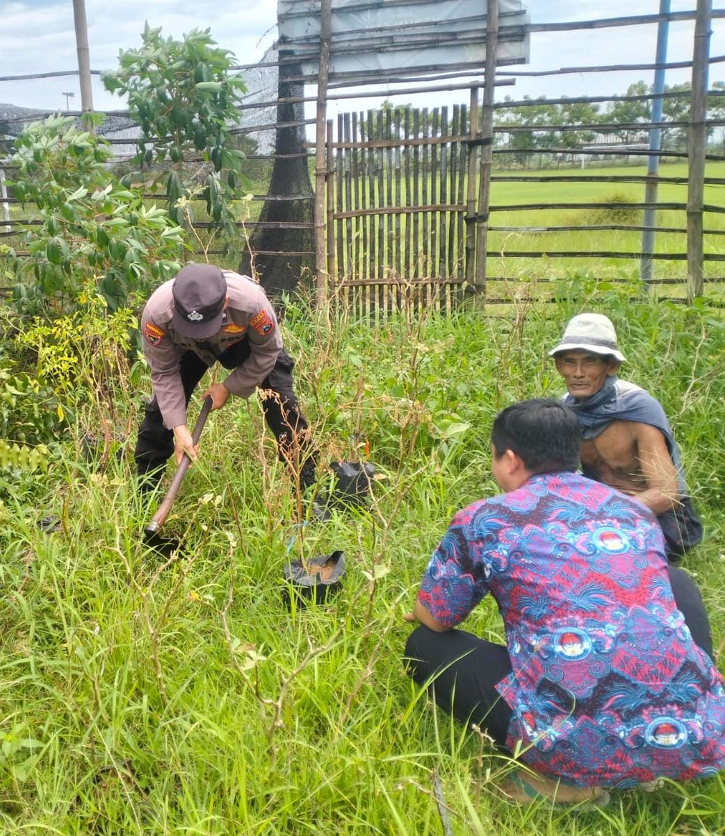 Bhabinkamtibmas juga memberikan semangat agar para petani tetap produktif dan semangat menggarap lahan sebagai bentuk kontribusi nyata terhadap ketahanan pangan lokal.