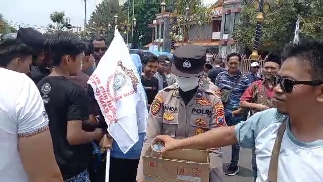Disela kegiatan unjuk rasa tampak Anggota Polwan Polres Pasuruan kota juga membagikan nasi kotak dan air mineral sebagai wujud rasa empati kepada para pengunjuk rasa