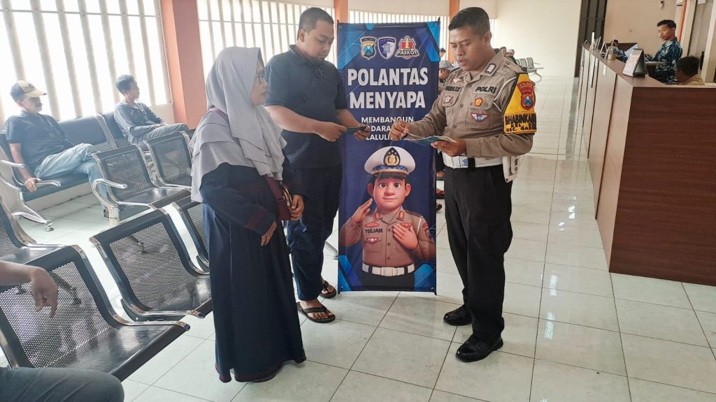 Pasuruan, 6 November 2025 – Dalam rangka meningkatkan kualitas pelayanan publik dan mempererat hubungan antara polisi dan masyarakat, Satuan Lalu Lintas (Satlantas) Polres Pasuruan Kota kembali melaksanakan kegiatan “Polantas Menyapa” di Samsat Pasuruan Kota, Kamis (6/11/2025).