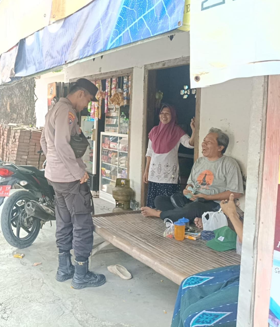 Dalam kegiatan, personel Bhabinkamtibmas tampak menyambangi warga yang sedang beraktivitas di depan warung, melakukan komunikasi langsung, serta menyampaikan pesan-pesan keamanan secara humanis dan persuasif.