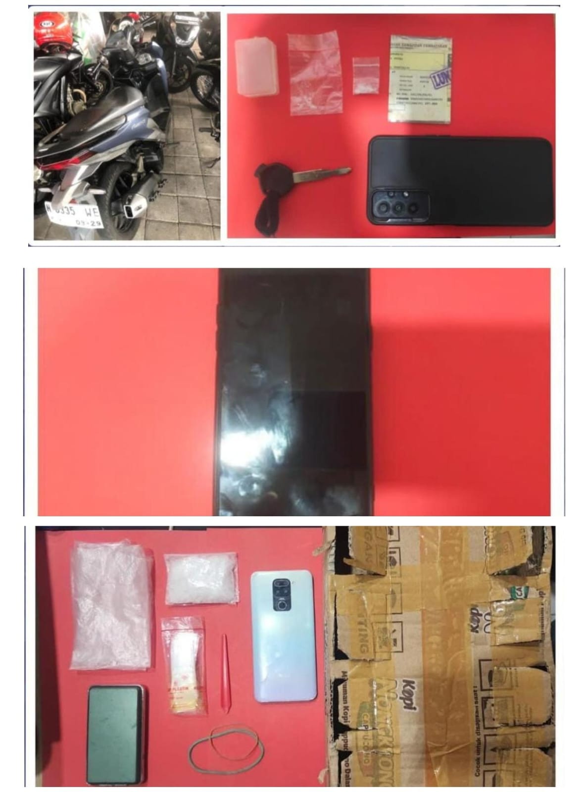 Dari tangan para tersangka, petugas berhasil menyita sejumlah barang bukti, di antaranya sabu-sabu dengan berat total lebih dari 32 gram, beberapa unit telepon genggam, satu unit sepeda motor, timbangan digital, plastik klip dalam jumlah banyak, serta peralatan yang diduga digunakan untuk mengemas narkotika.