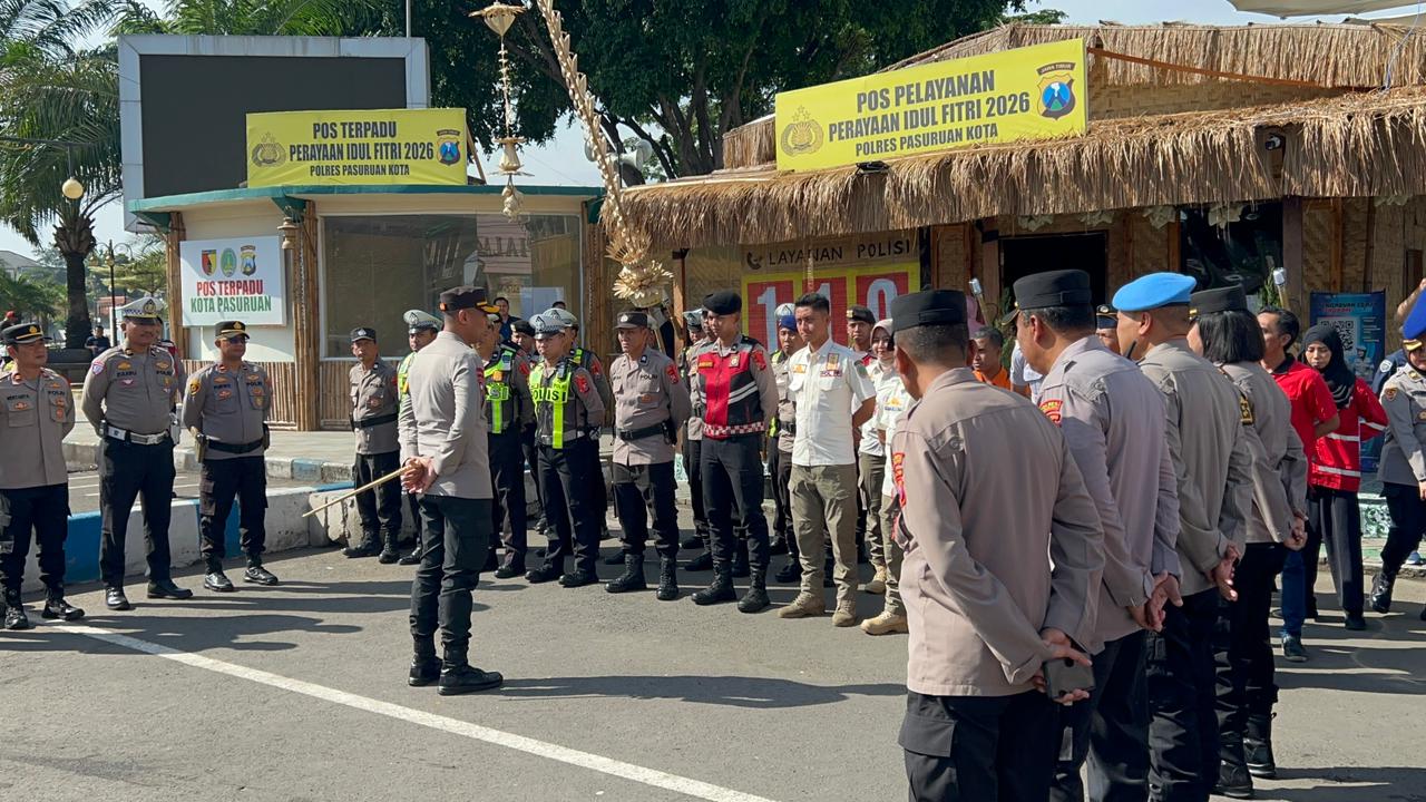Kapolres Pasuruan Kota menyampaikan apresiasi atas dedikasi para personel yang tetap siaga dalam memberikan pelayanan kepada masyarakat, khususnya di masa arus mudik dan perayaan Idul Fitri.