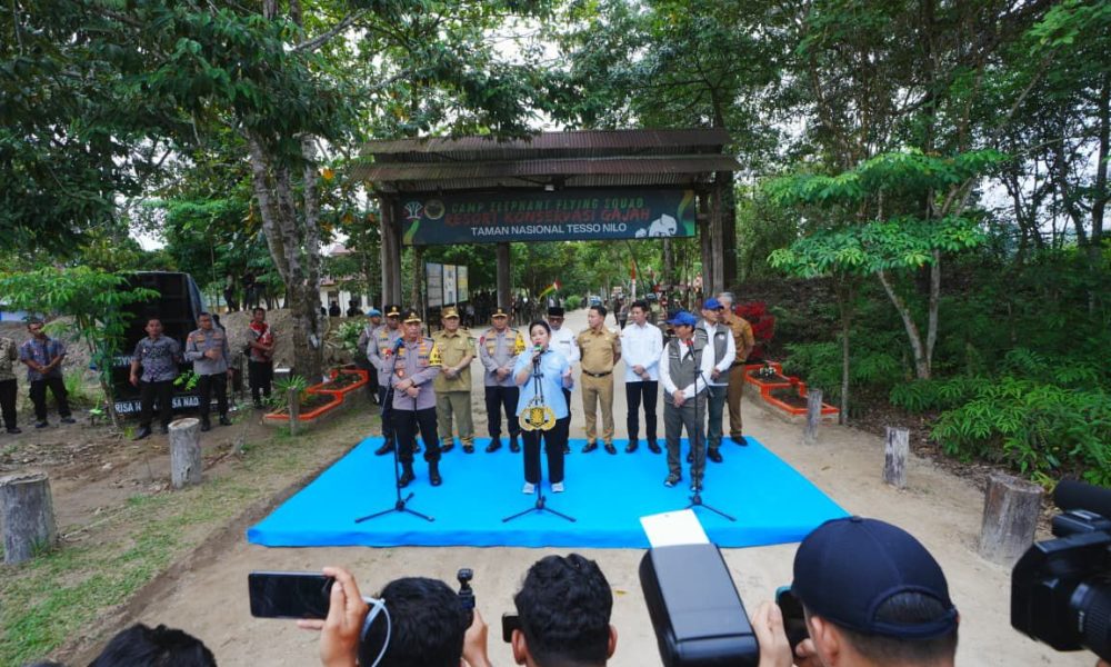 Kapolri Jenderal Listyo Sigit Prabowo bersama Ketua Komisi IV DPR Siti Hediati Hariyadi atau Titiek Soeharto meninjau lahan konservasi gajah di Taman Nasional Tesso Nilo (TNTN),...