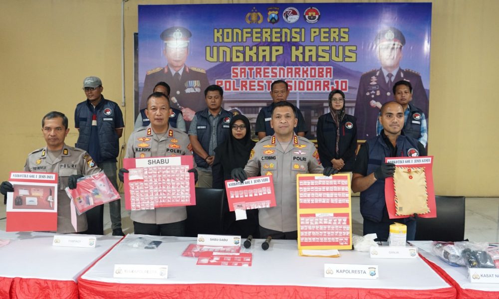 SIDOARJO – Sebanyak 19 kasus narkoba dengan jumlah tersangka 25 orang, berhasil diungkap Satuan Resnarkoba Polresta Sidoarjo Polda Jawa Timur pada Bulan Maret 2026. Kapolresta Sidoarjo...